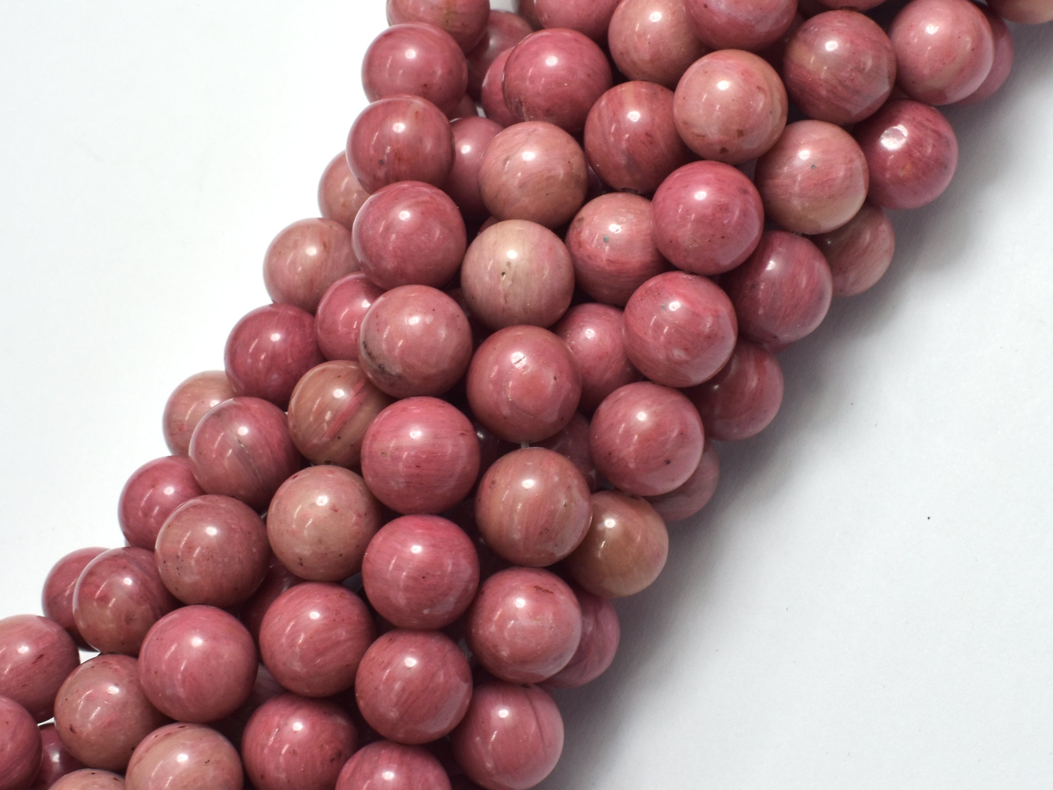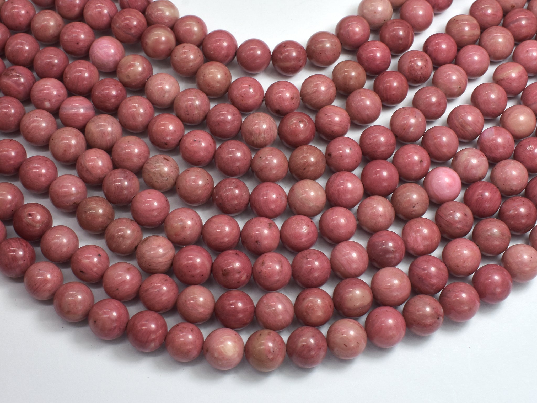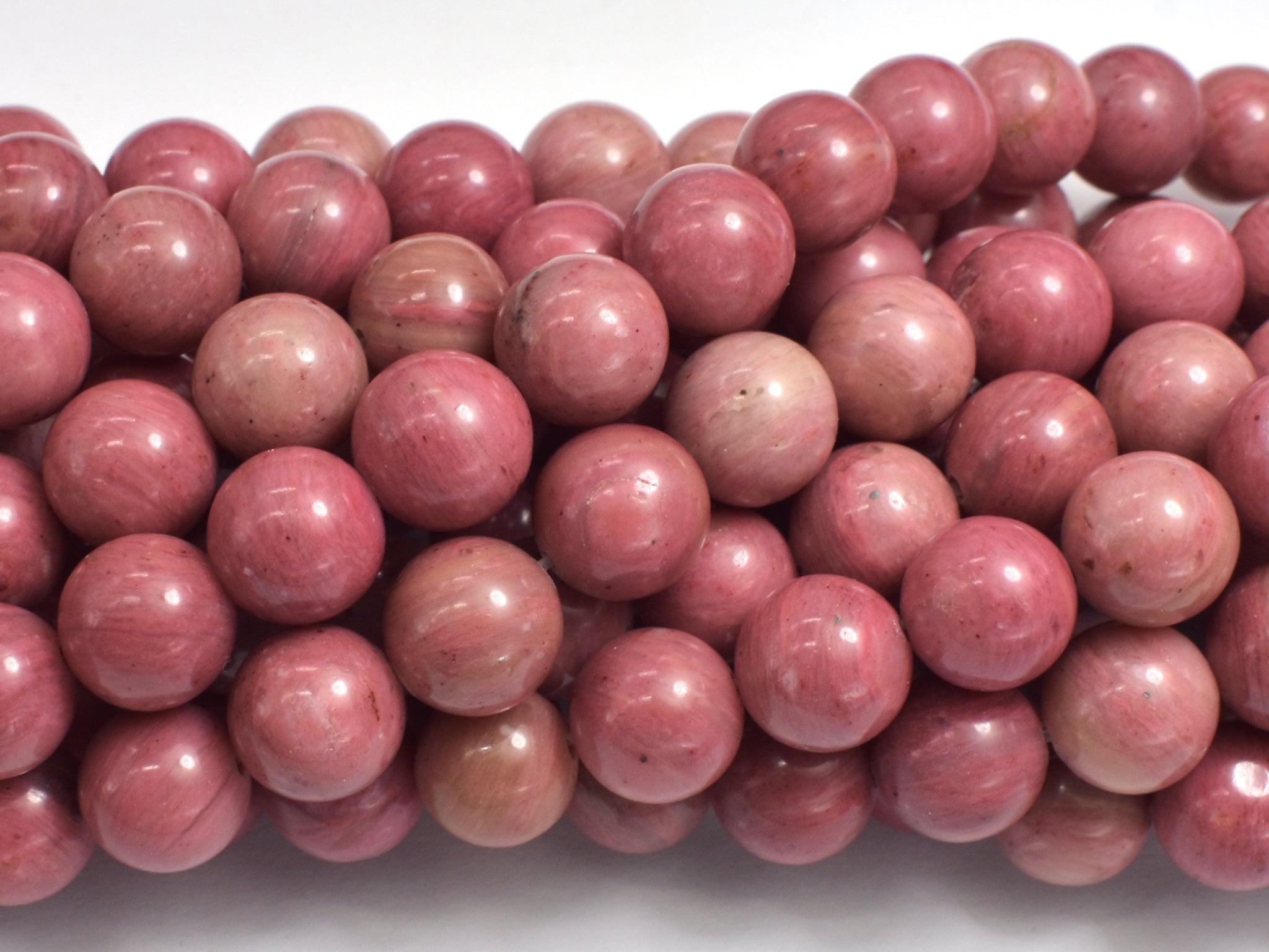Name: Rhodonite Shape: Round Size: Approx. 10mm (10.5mm), 15 Inch, Full strand, Approx. 37 beads, Hole 1mm Color: Pink Quality: A+