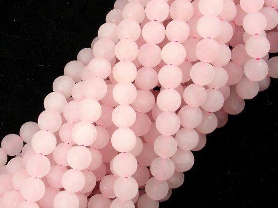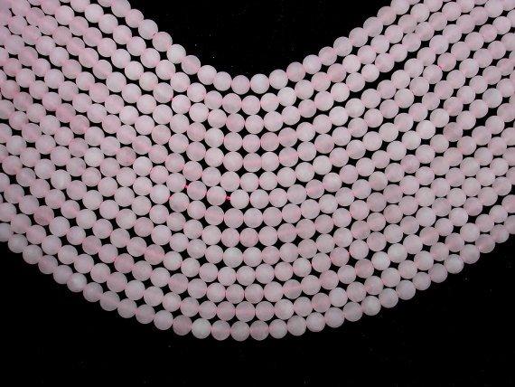 Name: Frosted Matte Rose Quartz Shape: Round Size: Approx 6 mm (6.4 mm), 15 Inch, Full strand, Approx 63 beads, Hole 1 mm Color: Pink Quality: AB+