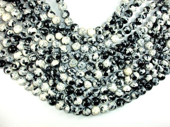 Rain Flower Stone, Round Beads, Black, White, 10mm